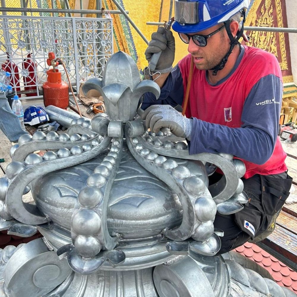 BOURGEOIS a eu l’honneur d’être contactée par les services de Sa Majesté Norodom Sihamoni, Roi du Cambodge pour la restauration de la couronne et d’un des deux dômes en zinc du pavillon Napoléon III.
